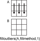 filloutliers(A,fillmethod,1) заполняет отклонения в соответствии с данными в каждом столбце.