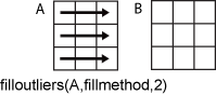 filloutliers(A,fillmethod,2) заполняет отклонения в соответствии с данными в каждой строке.