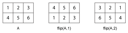 B = flip( возвращает массив A)B того же размера, что и A, но с обратным порядком элементов. Измерение, которое переупорядочено в B зависит от формы A: