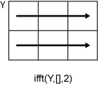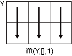 Если Y является многомерным массивом, то ifft(Y) обрабатывает значения вдоль первой размерности, размер которой не равен 1, как векторы и возвращает обратное преобразование каждого вектора.