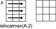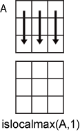Например, если A является матрицей, то islocalmax(A,1) работает вдоль рядов Aвычисление локальных максимумов для каждого столбца.