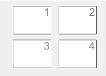 'rowmajor' | Номера плиток увеличиваются по рядам слева направо. Например, на этом рисунке показаны основные индексы мозаики строк для компоновки 2 на 2.