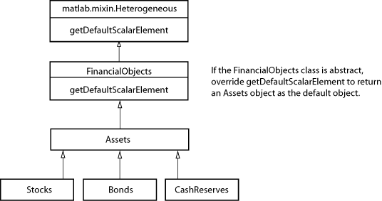 Корневой класс может переопределять getDefaultScalarElement метод, определенный в matlab.mixin.Heterogeneous класс и вернуть Assets в качестве объекта по умолчанию.