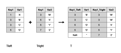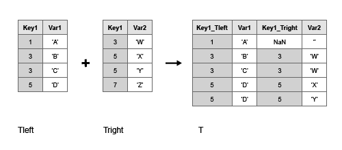 Если Tleft имеет метки строк, затем outerjoin копирование меток строк из Tleft для создания меток строк в T.