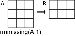 удаляет отсутствующие записи из массива или таблицы. Если R = rmmissing(A)A является вектором, то rmmissing удаляет любую запись, содержащую отсутствующие данные. Если A является матрицей или таблицей, то rmmissing удаляет любую строку, содержащую отсутствующие данные. Отсутствующие значения определяются в соответствии с типом данных A: