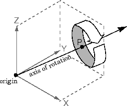 Трехэлементная форма для direction определяет направление оси с помощью декартовых координат. Вектор направления - это вектор от начала вращения до P.