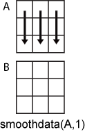 Если A является многомерным массивом, то smoothdata работает вдоль первого размера, размер которого не равен 1.