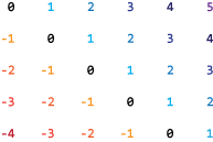 d < 0 находится ниже основной диагонали и удовлетворяет d >= -(m-1).