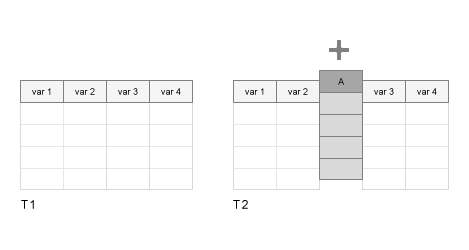 T2 = addvars( вставляет переменные слева от табличной переменной, указанной T1,var1,...,varN,'Before',location)location (см. диаграмму). Можно указать location в качестве имени переменной или числового или логического индекса.