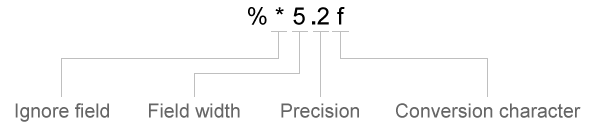 Спецификаторы преобразования в formatSpec могут включать необязательные операторы, которые отображаются в следующем порядке (включают пробелы для ясности):
