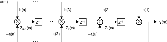 tsout = filter( применяет фильтр рациональной передаточной функции b (z − 1 )/a (z − 1) к равномерно разнесенным данным вtsin,b,a)timeseries объект tsin. Нумератор b и знаменатель a - векторы, содержащие коэффициенты передаточной функции.