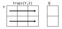 Q = trapz(___, интегрируется вдоль размера dim)dim с использованием любого из предыдущих синтаксисов. Необходимо указать Y, и при необходимости может указать X. При указании X, то это может быть скаляр или вектор с длиной, равной size(Y,dim). Например, если Y является матрицей, то trapz(X,Y,2) интегрирует каждую строку Y.