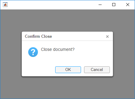 fig = uifigure; uiconfirm(fig,'Close document?','Confirm Close',... 'CloseFcn',@mycallback);