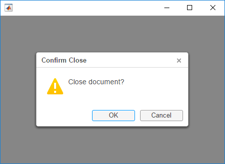 fig = uifigure; selection = uiconfirm(fig,'Close document?','Confirm Close',... 'Icon','warning');
