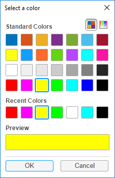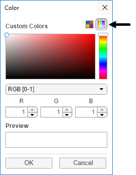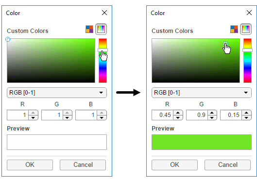 c = uisetcolor( задает выбор цвета по умолчанию в качестве цвета объекта (например, obj)Figure). Если выбрать другой цвет в палитре цветов, цвет объекта изменится на новый после нажатия кнопки «ОК». Объект должен иметь свойство, которое управляет некоторым аспектом цвета. Например, некоторые объекты имеют Color или BackgroundColor собственность.