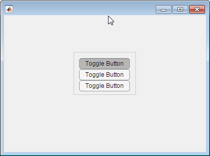 создает переключатель в группе кнопок и возвращает tb = uitogglebuttonToggleButton объект. MATLAB ® вызывает uifigure для создания родительского рисунка группы кнопок.