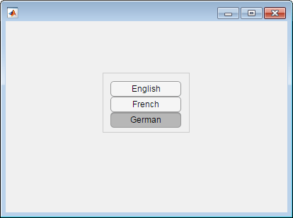 Чтобы программа отвечала, когда пользователь приложения выбирает переключатель или переключатель, находящийся внутри группы кнопок. определить SelectionChangedFcn функция обратного вызова для ButtonGroup объект. Невозможно определить обратные вызовы для отдельных кнопок.