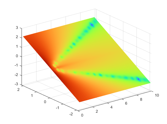 colormap(turbo) h = slice(x,y,z,v,xd,yd,zd); h.FaceColor = 'interp'; h.EdgeColor = 'none'; h.DiffuseStrength = 0.8;