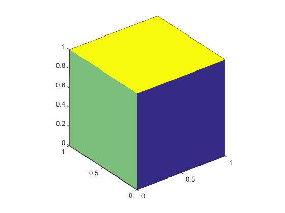 'FaceVertexCData',(1:6)','FaceColor','flat')Отрегулируйте оси: