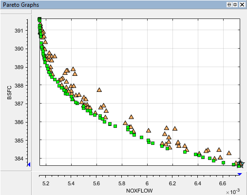 Графики Pareto показывают доступные решения для выбранного прогона: