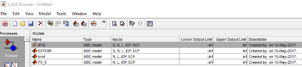 При импорте из проекта CAGE можно выбрать Variable, Model, Normalizer, Table, Feature, Optimization, Dataset, или Tradeoff из элементов CAGE в списке Тип. Для моделей в столбце Подтип (Subtype) отображается, является ли элемент модели моделью MBC, функциональной моделью или моделью элемента.