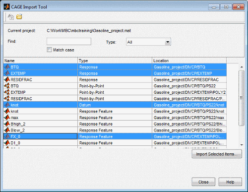 Инструмент импорта CAGE можно использовать для выбора элементов для импорта из любого файла проекта Калибровка на основе модели (Model-Based Calibration Toolbox™), созданного в CAGE или браузере модели (.mat или .cag). Это может значительно упростить настройку новых проектов, а также внесение изменений в существующие проекты, например, для использования новых моделей в существующей оптимизации и калибровке.