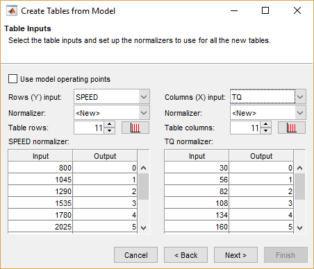 Если оставить значения по умолчанию, для точек останова таблицы будут использоваться рабочие точки модели. Однако необходимо создать различные таблицы для рабочих точек.