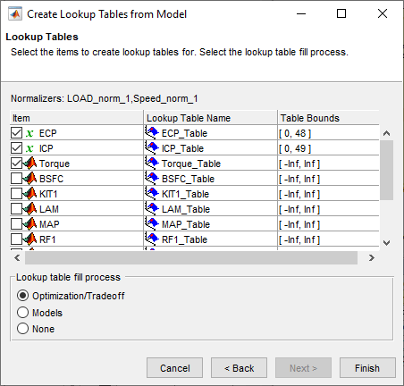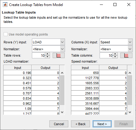 Чтобы увидеть, как настроить эти таблицы, выберите Инструменты > Создать таблицы подстановки из модели. Появится мастер Создать таблицы подстановки из модели (Create Lookup Tables from Model).
