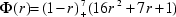 Они образуют семейство радиальных базисных функций, которые имеют кусочно-полиномиальную функцию профиля и компактную поддержку [Wendland, см. Ссылки]. Выбираемый член семейства зависит от размера пространства (n), из которого выводятся данные, и желаемой степени непрерывности многочленов.