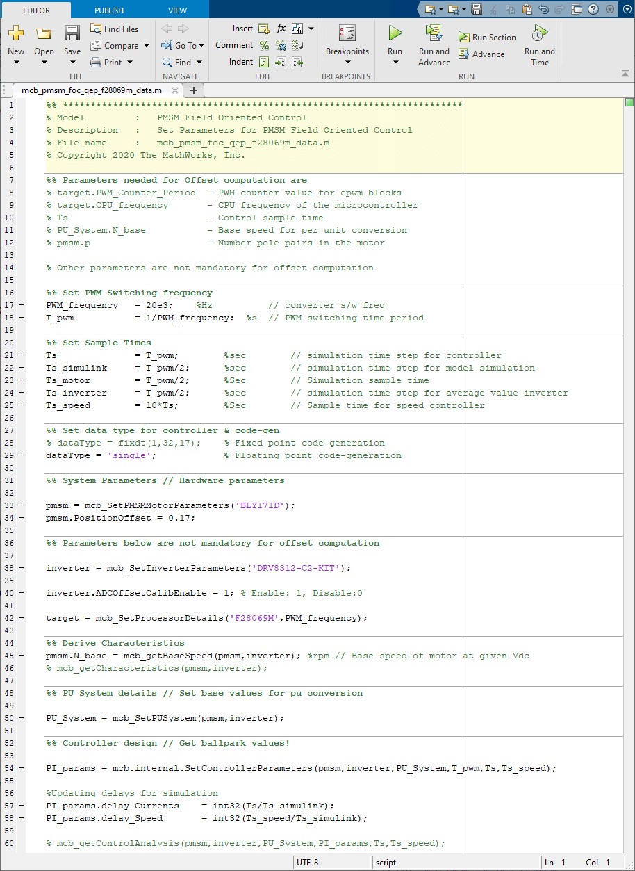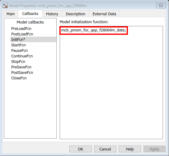 Сценарий инициализации модели, связанный с целевой моделью, вызывает эти функции и настраивает рабочую область с необходимыми переменными.