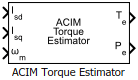 Блок оценки крутящего момента ACIM генерирует оценки электромеханического крутящего момента и мощности для асинхронного двигателя. Блок выдает математически вычисленный электромеханический крутящий момент для постоянных параметров двигателя. Для измерения точного значения крутящего момента рекомендуется использовать физический датчик.
