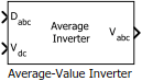 Блок инвертора среднего значения моделирует инвертор среднего значения и полноволновый инвертор. Он вычисляет трехфазное напряжение переменного тока, выходящее из постоянного напряжения инвертора, используя информацию о рабочем цикле.
