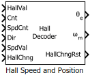 Блок Hall Speed and Position вычисляет механическую скорость ротора, отслеживая изменения в состоянии Hall. Блок также оценивает электрическое положение ротора, используя направление, состояние Холла и входные значения внешнего счетчика.