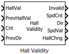 Блок достоверности Холла проверяет и проверяет каждое состояние выходной последовательности датчика Холла. Блок идентифицирует состояние, когда один или несколько датчиков Холла находятся в недопустимом состоянии.