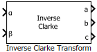 Используя эти уравнения, блок реализует обратное преобразование Кларка как,