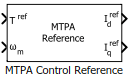 Контрольный опорный блок MTPA вычисляет значения опорного тока d-оси и q-оси для максимального крутящего момента на ампер (MTPA) и операций ослабления поля. Вычисленные значения опорного тока приводят к эффективному выходу синхронного двигателя с постоянным магнитом (PMSM).