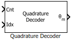 Блок квадратурного декодера вычисляет положение квадратурного кодера. Блок использует текущее значение счетчика кодера и значение счетчика кодера в предыдущем индексном импульсе для вычисления углового положения квадратурного кодера (и ротора) в градусах, радианах или на единицу.