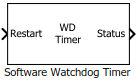 Блок контрольного таймера программного обеспечения увеличивает значение счетчика до тех пор, пока блок не получит Restart входной импульс или счетчик достигает значения параметра Maximum count.