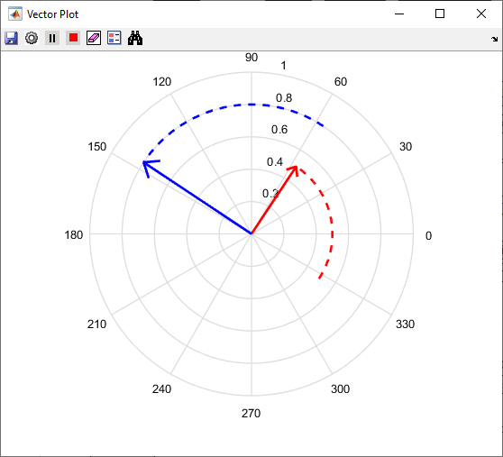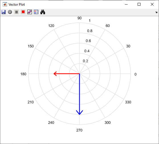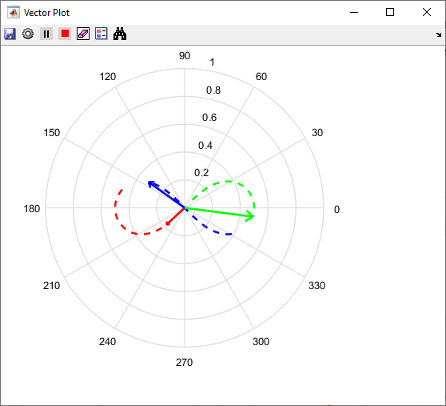 Блок векторной графики отображает и отслеживает изменения векторов в пространственной области. Блок можно использовать для визуализации векторов электрических величин (таких как напряжение и ток) и отслеживания их изменений в реальном времени с помощью следа, оставленного кончиком вектора.