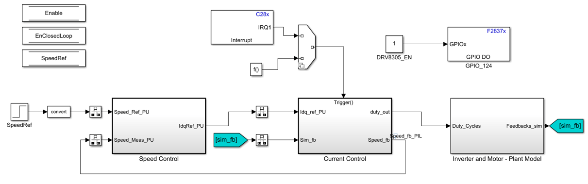 Подробные сведения о конфигурации интерфейса решателя и квадратурного кодера см. в разделе Параметры конфигурации модели.