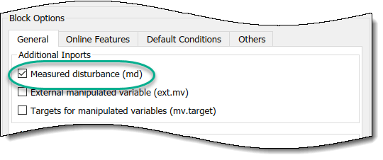 В диалоговом окне «Параметры блока» на вкладке «Общие» выберите опцию «Измеренное возмущение (md)».