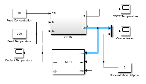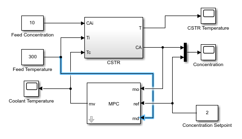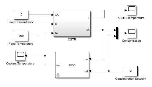 В этом примере показано, как с помощью MPC Designer разработать модель прогнозирующего контроллера для непрерывного реактора с мешалкой (CSTR) в Simulink ®.