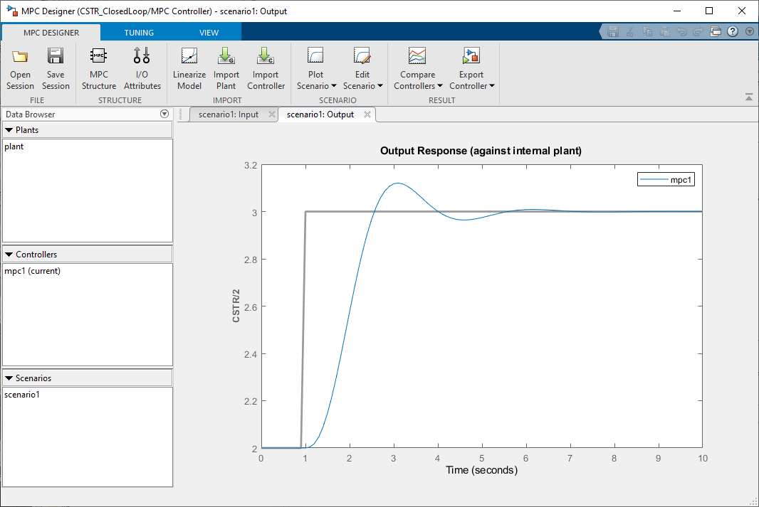 Контроллер MPC по умолчанию mpc1 создан с использованием линеаризованного растения в качестве внутренней модели прогнозирования