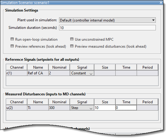 В диалоговом окне Сценарий моделирования (Simulation Screament) в таблице Опорные сигналы (Reference Signals) в выпадающем списке Сигнал (Signal) выберите Константа (Constant), чтобы сохранить выходную уставку на номинальном уровне.
