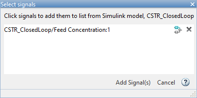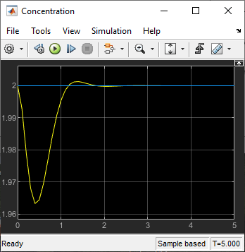 В окне Simulink model щелкните выходной сигнал из блока Feed Concentration.