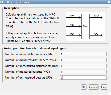 В диалоговом окне «Размеры сигналов блока MPC» укажите количество каналов ввода/вывода каждого типа.