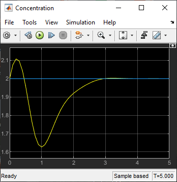 В окне Simulink model откройте область Concentration и запустите моделирование.