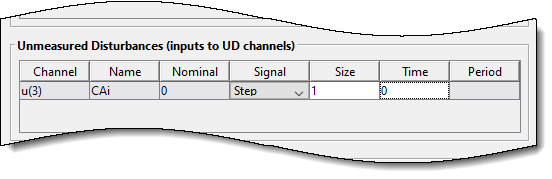 В таблице Измеренные возмущения в раскрывающемся списке Сигнал выберите Шаг.