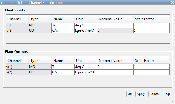 По умолчанию все заводские входы определяются как управляемые переменные, а все заводские выходы - как измеряемые выходы. В разделе Assign plant i/o channel присвойте индексы входного и выходного каналов таким образом, чтобы:
