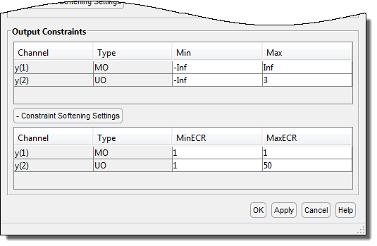 По умолчанию все выходные ограничения являются мягкими, что означает, что их значения MinECR и MaxECR больше нуля. Чтобы смягчить неизмеренное ограничение выхода (UO), увеличьте его значение MaxECR.